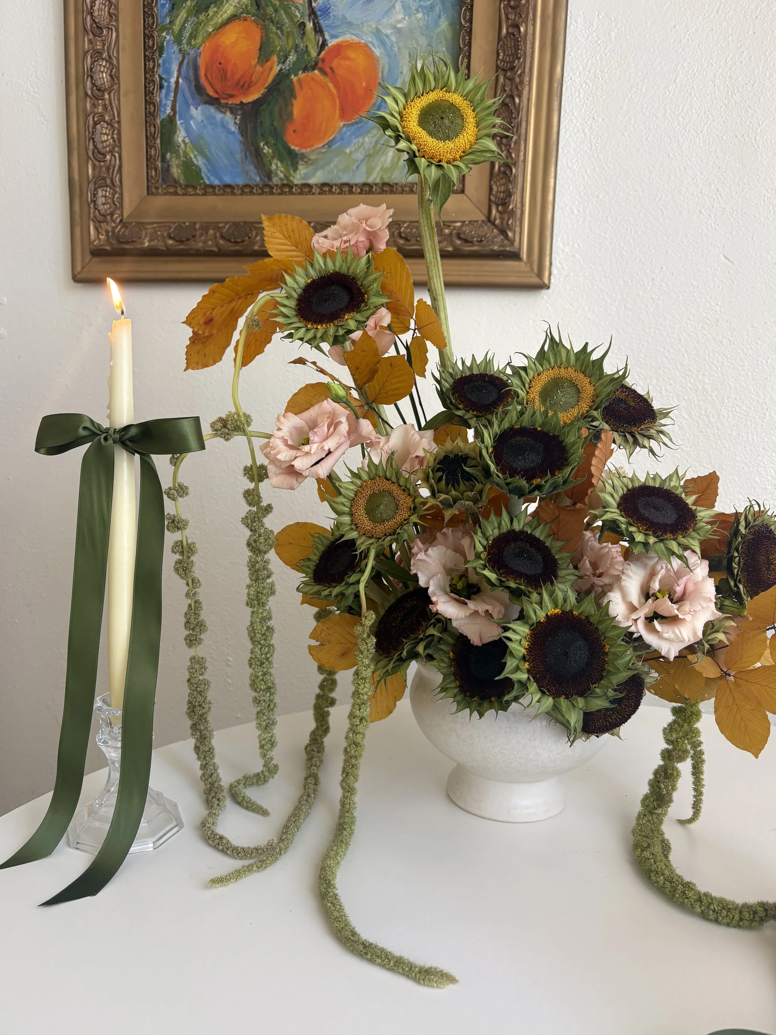 ORDER NOW FOR PICKUP OR DELIVERY ORDER NOW FOR PICKUP OR DELIVERY ORDER NOW FOR PICKUP OR DELIVERY gathering table arrangement$200 a special fall arrangement for whatever table you'll be gathering around. each arrangement will be in a keepsake ceramic vase and comes with a pair of taper candles and matching candlestick holders
