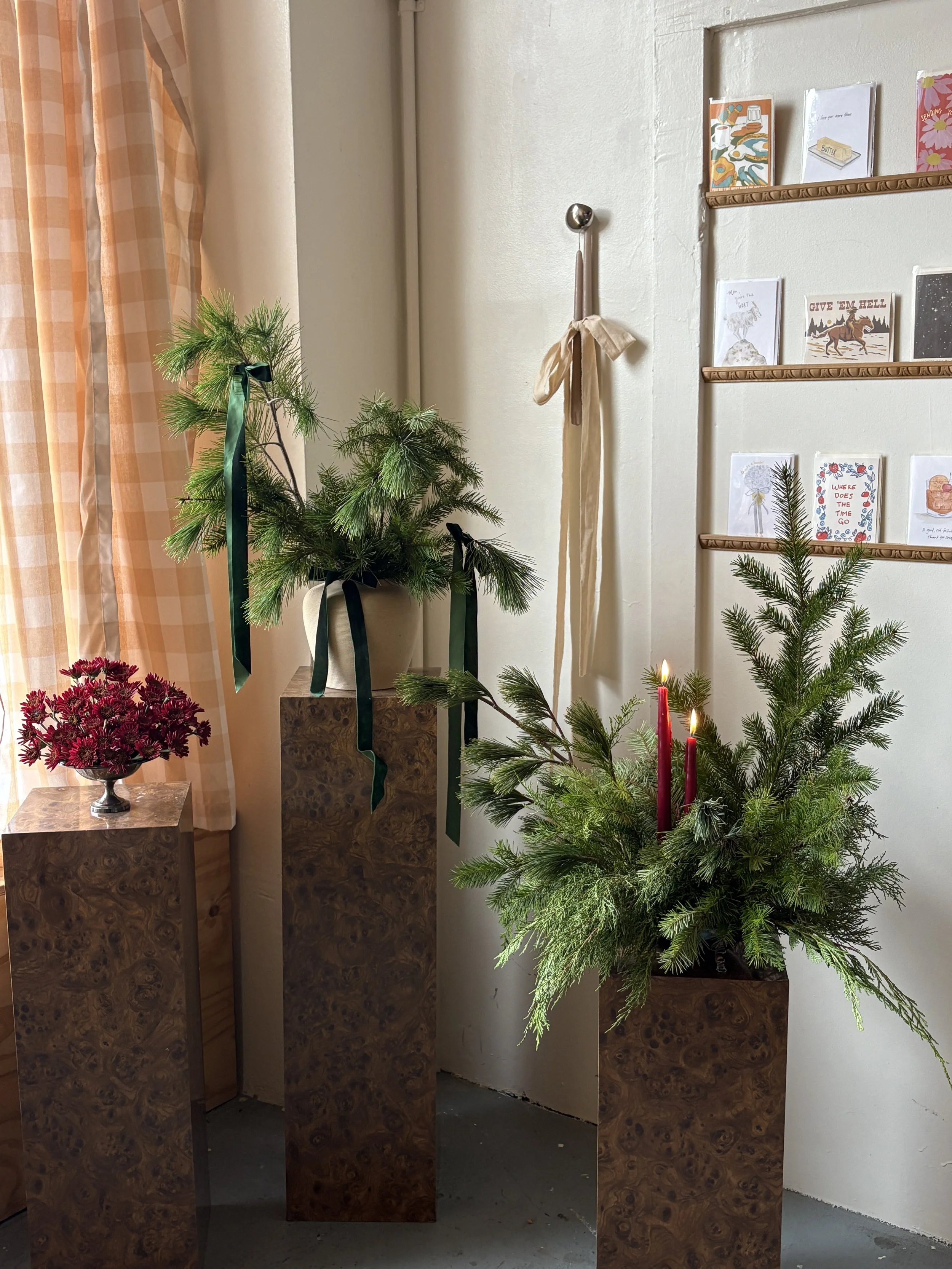 The holiday season is (finally) here and to celebrate our favorite time of the year, we’ve put together a collection of ways to brighten your spaces with fresh flowers and of course, fragrant greenery too. Use this form to browse our pricing and submit an inquiry or give us a call to place your order -